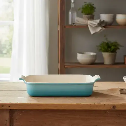 A Travessa Retangular Heritage Le Creuset 32 cm é perfeita para quem busca alto desempenho, versatilidade e sofisticação no preparo e na apresentação de receitas. Com tamanho amplo, é ideal para assados maiores, massas, gratinados e sobremesas, atendendo desde o uso diário até ocasiões especiais com elegância.